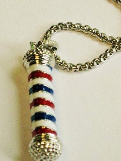 Laat zien dat je Barbier bent,mooie Barberpole pin om op je t-Shirt-Jasje-Trui enz te spelden.