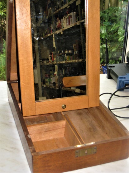 Mooie antieke scheerkist om al je scheerspullen in op te bergen ,met vakindeling.